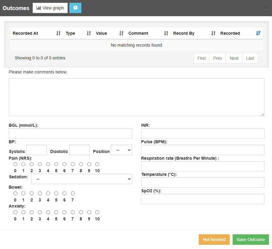 - Enter the outcome for the resident and any other relevant information, then click Save Outcome.