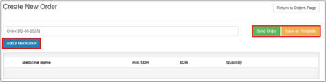 - Click on Add a Medication to your template and click on Send Order or Save as Template.