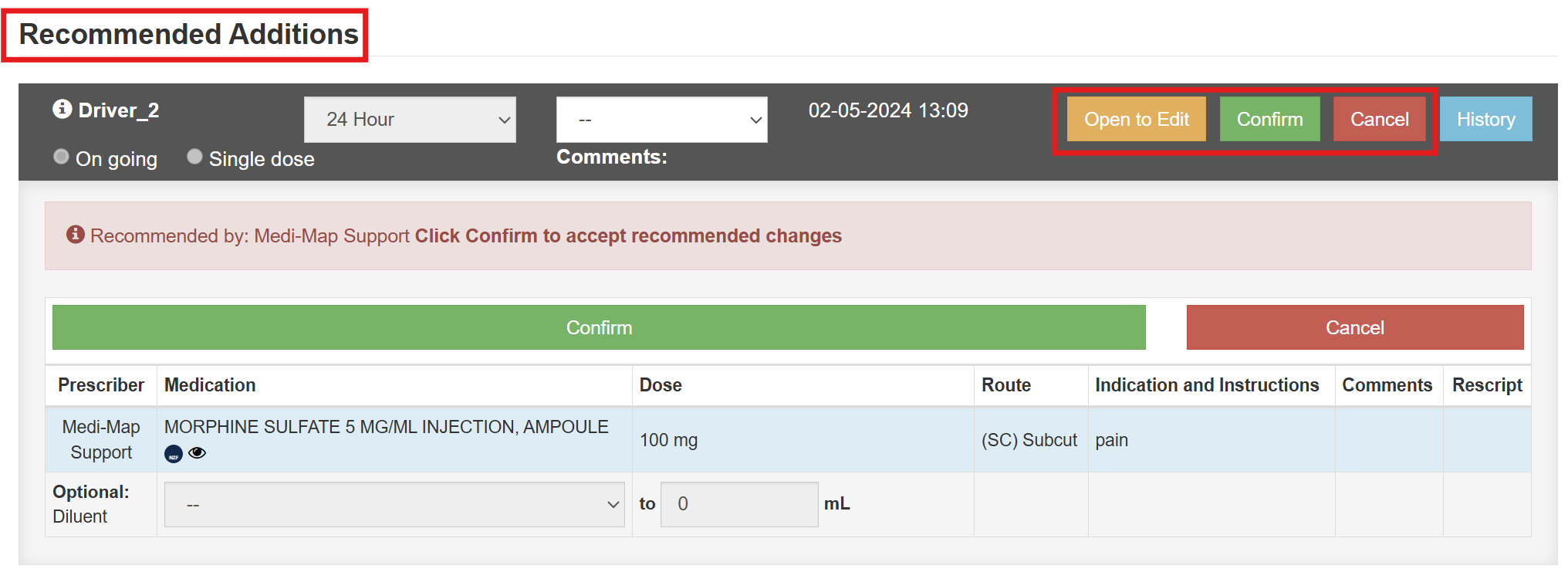 - Above the Current list of Medications, recommended changes will be listed.
