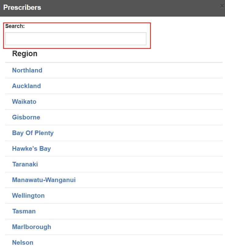 Click on the name to add. If the prescriber is not registered with MediMap access, then they will not appear on the list. You will need to contact the prescriber and ask them to contact MediMap to register.