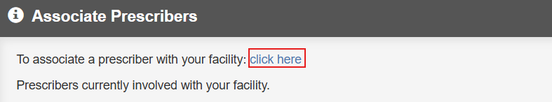 To associate a prescriber with your facility, click the click here link.