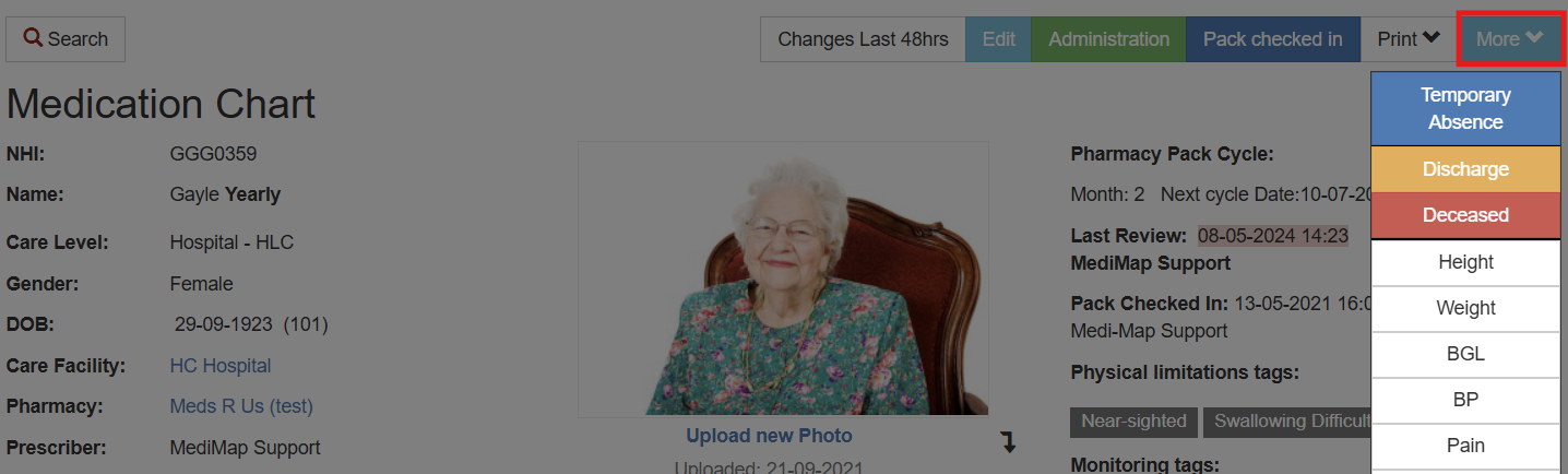 Discharge a resident or mark as deceased or offsite
