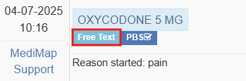 Where a prescriber has chosen to prescribe using free text this will be highlighted in blue. Items charted using free text do not meet legislative requirements and cannot be used for dispensing.