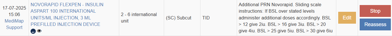 If the sliding scale is more complex a copy of the document can be loaded onto the resident's chart in the documents tab. Add instructions in the PRN line to advise staff to refer to the sliding scale document attached to the chart.