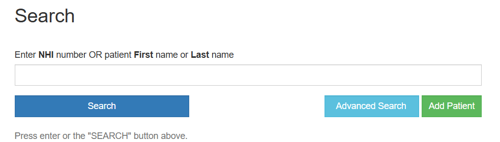 - Click the Search button and enter the client’s first or last name or NHI.