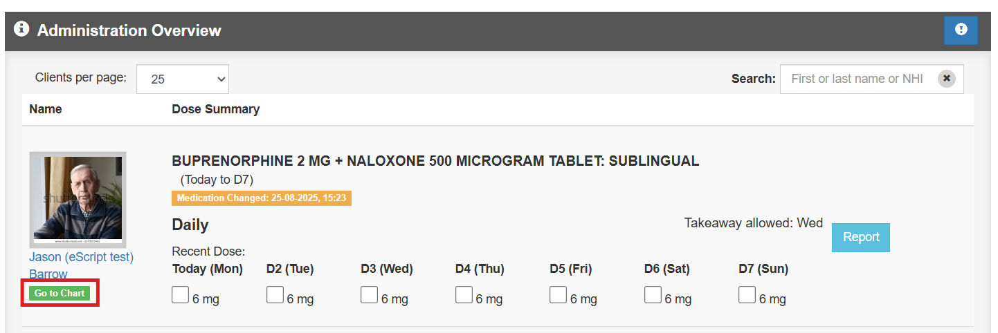 - Administration Overview – displays the dispense status for all clients.