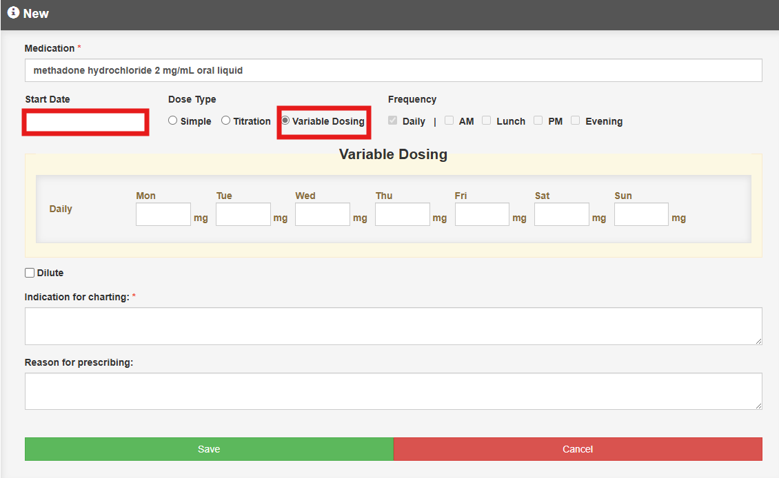 - Start Date – select the date and dose type as Variable Dosing