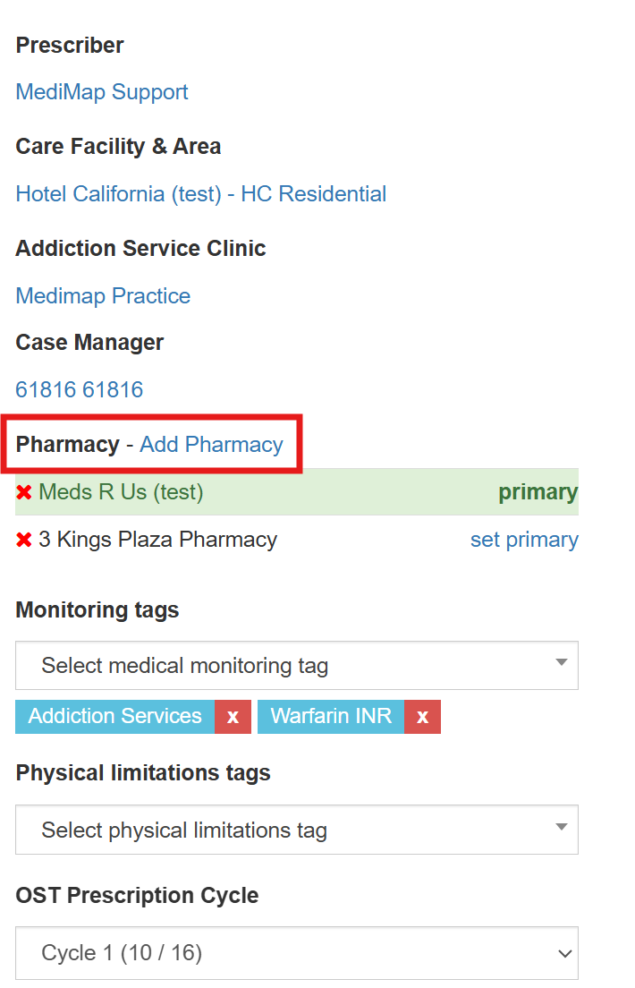 If different pharmacies dispense for your client on different days, then this will need to set when adding a new medication to the OST tab. If there is only one pharmacy supplier, this field will not appear.