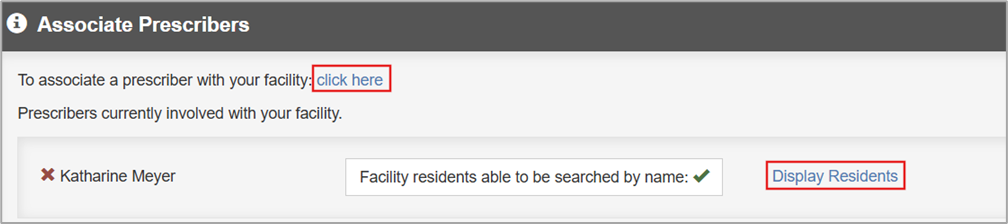 Display Residents – click to view a list of residents who are registered to a specific prescribe.