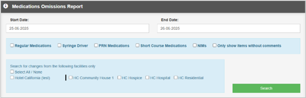 Medicine Reports - Medications Omissions Report