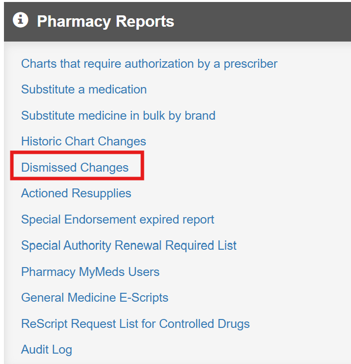 - Click on Dismissed Changes.