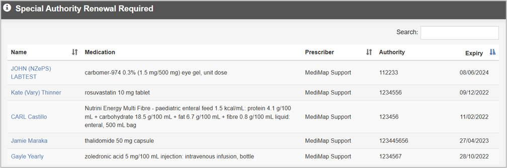 - Click on Special Authority Renewal Required List.