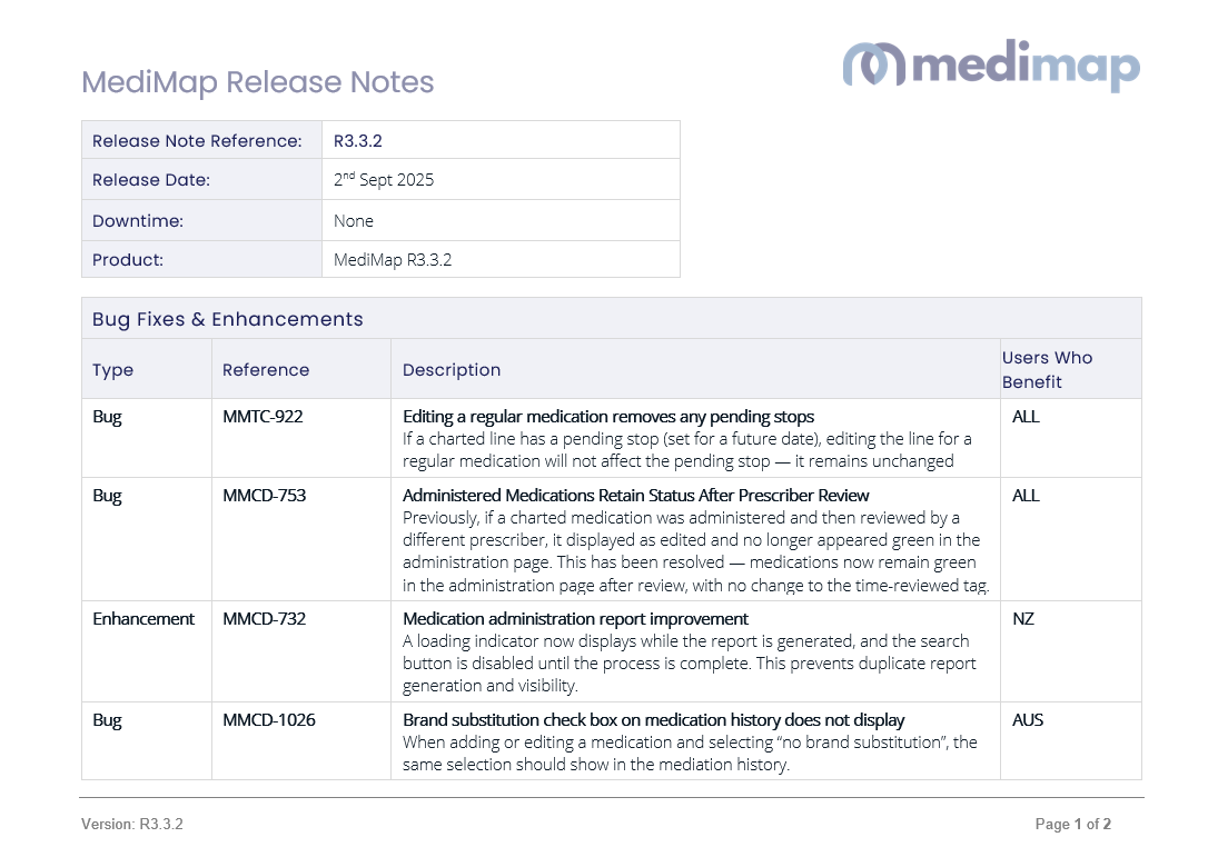 Release Notes 3.3.2 Print Article Related articles Release Notes 3.2.2 Release Notes 3.3.4 Release Notes 3.3.3 Release Notes 3.4.1 Prescriber Account Deactivation