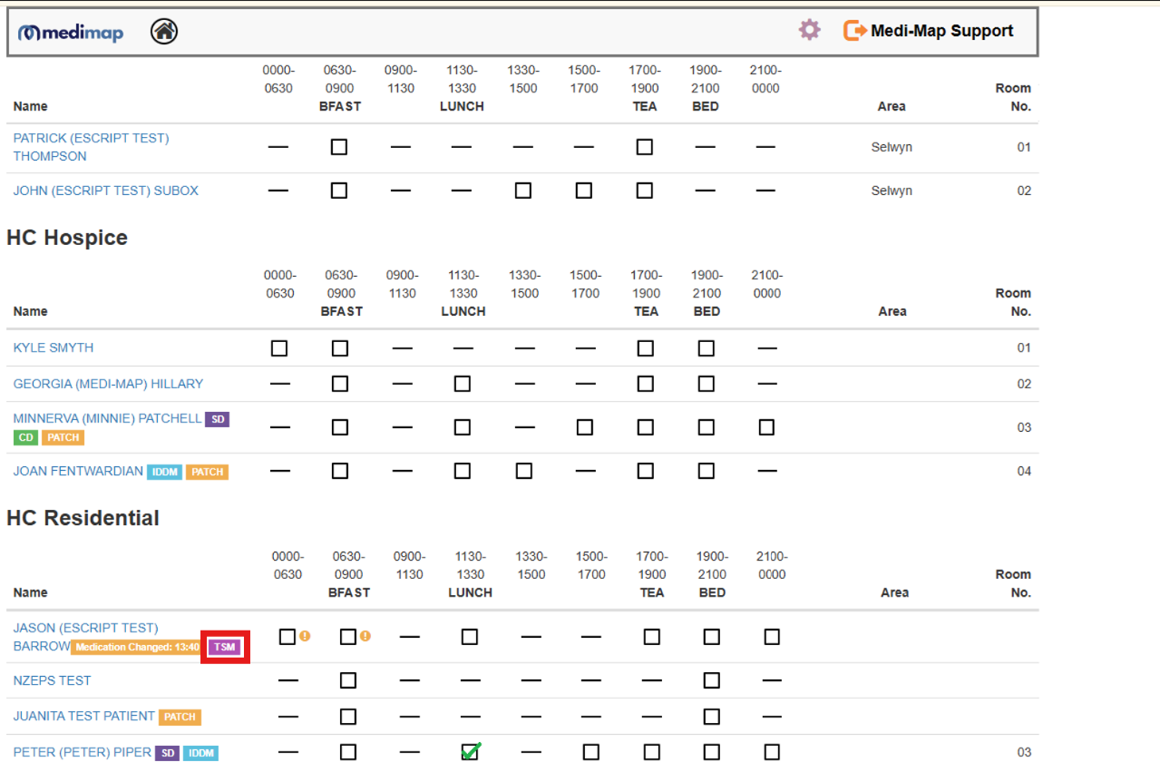 - The TSM tag will also be visible against the residents in the administration grid.