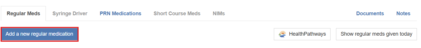 - Under the Regular Meds tab click on Add a new regular medication.
