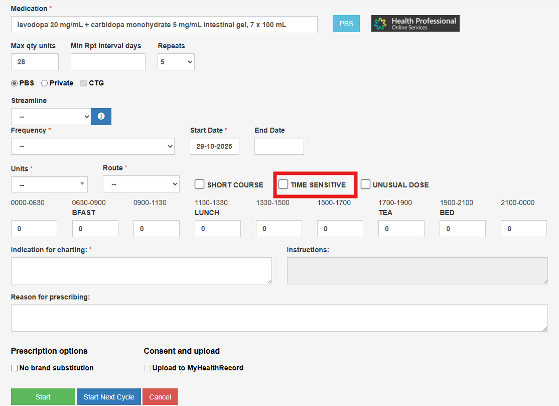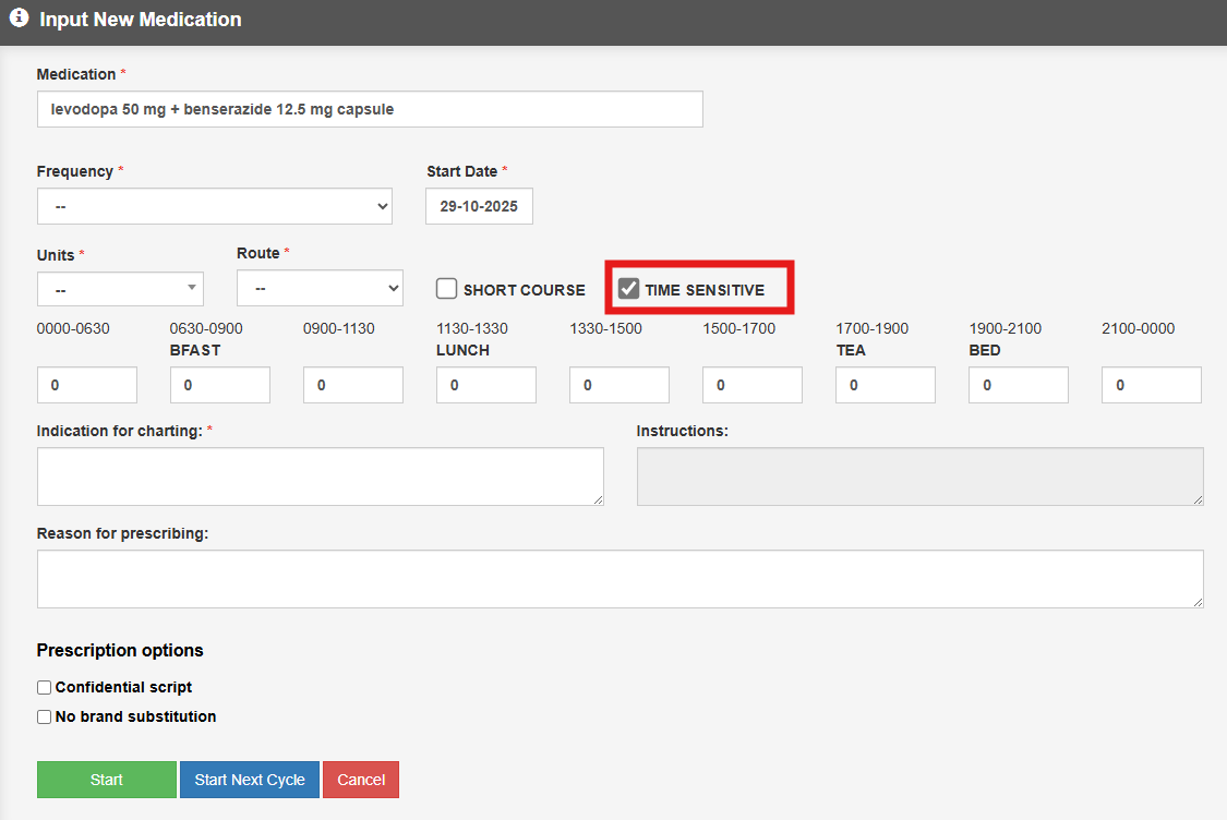 Time Sensitive - if appropriate tick the medication as time sensitive,