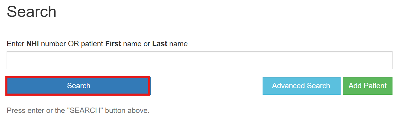 - Enter the client's NHI number and click on Search. Click on their name to open the Medication Chart.