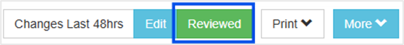 - Open the resident's medication chart and click on Reviewed. This will update the whole chart and records the date and time the review was completed
