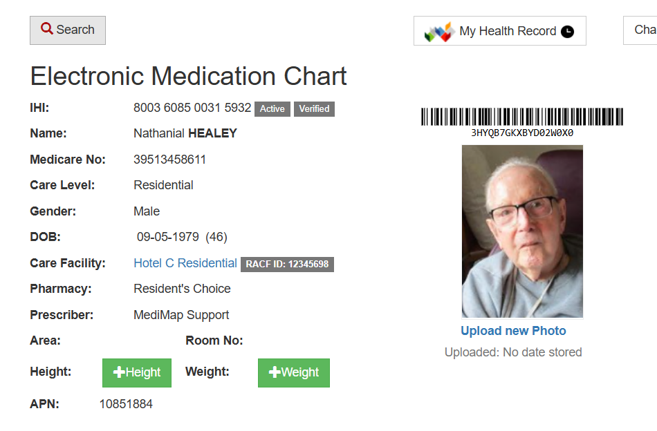 Once eNRMC has been enabled for the aged care facility you support, each resident’s medication chart must be reviewed. When the review has been completed, barcodes will be generated and the medication chart is now compliant with eNRMC requirements.
